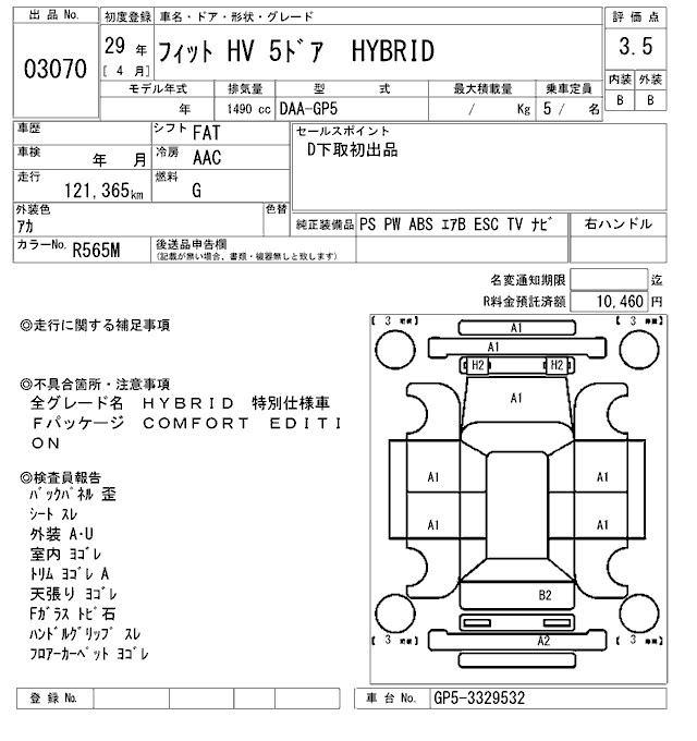 HONDA FIT HYBRID - лот 3070