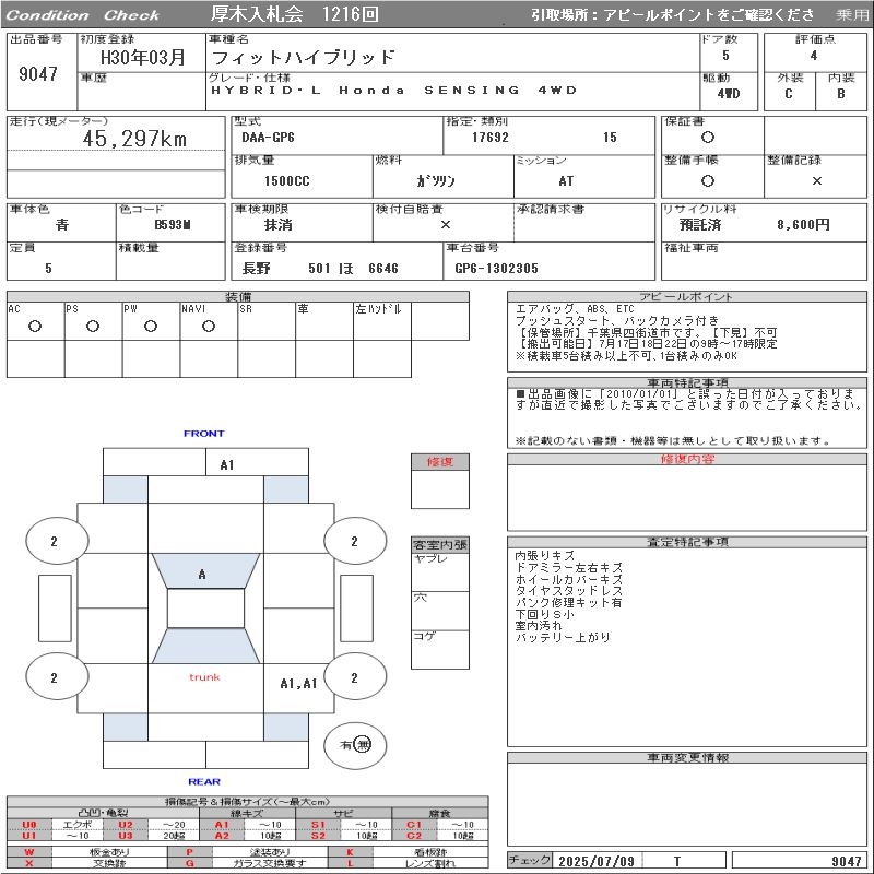 HONDA FIT HYBRID HYBRID*L Honda SENSING 4WD - лот 9047