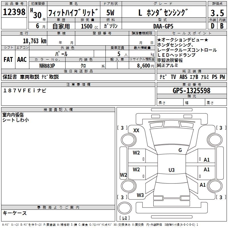 HONDA FIT HYBRID L HONDA SENSING - лот 12398