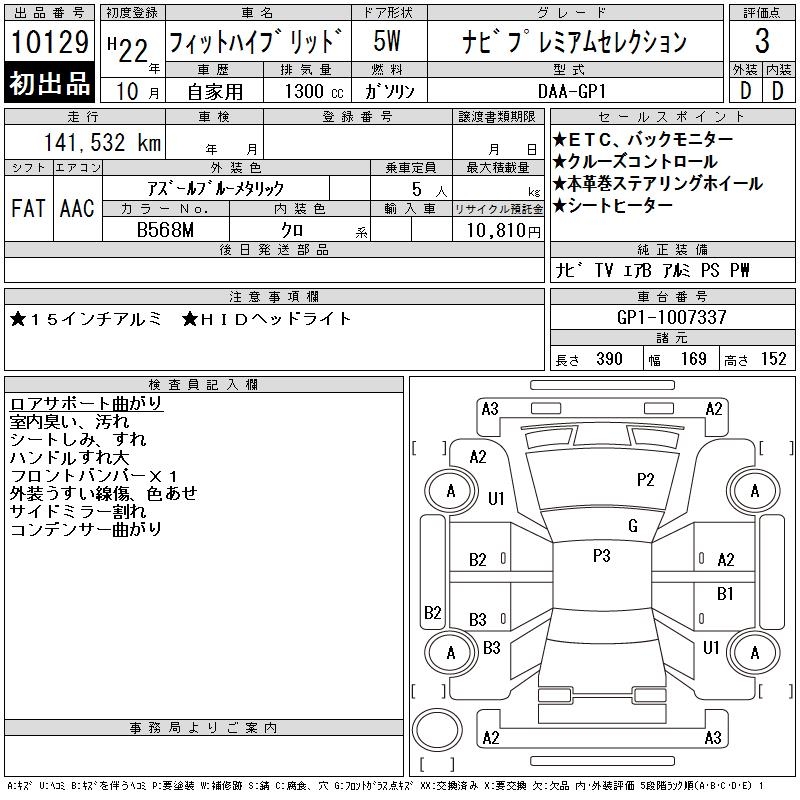 HONDA FIT HYBRID NAVIGATION PREMIUM SELECTION - лот 10129