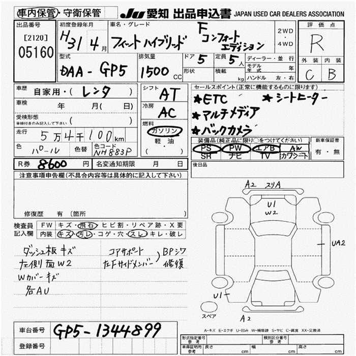 HONDA FIT HYBRID F COMFORT EDITION - лот 5160