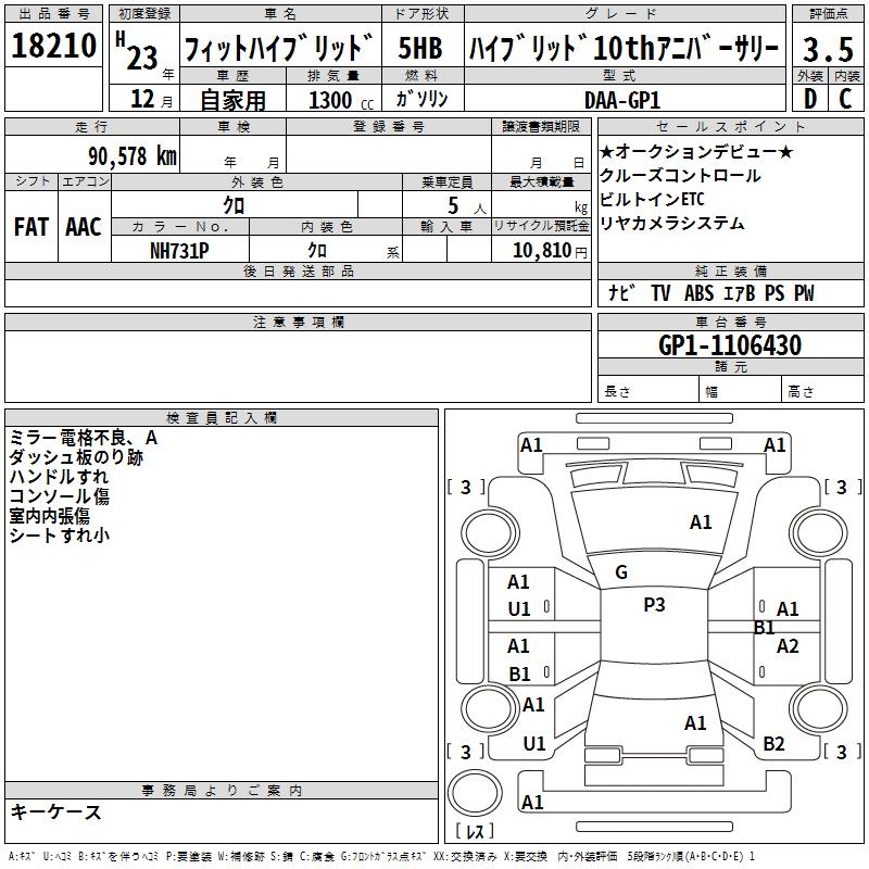 HONDA FIT HYBRID HYBRID 10TH ANNIVERSARY - лот 18210