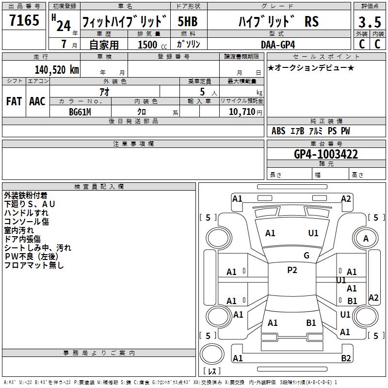HONDA FIT HYBRID HYBRID RS - лот 7165