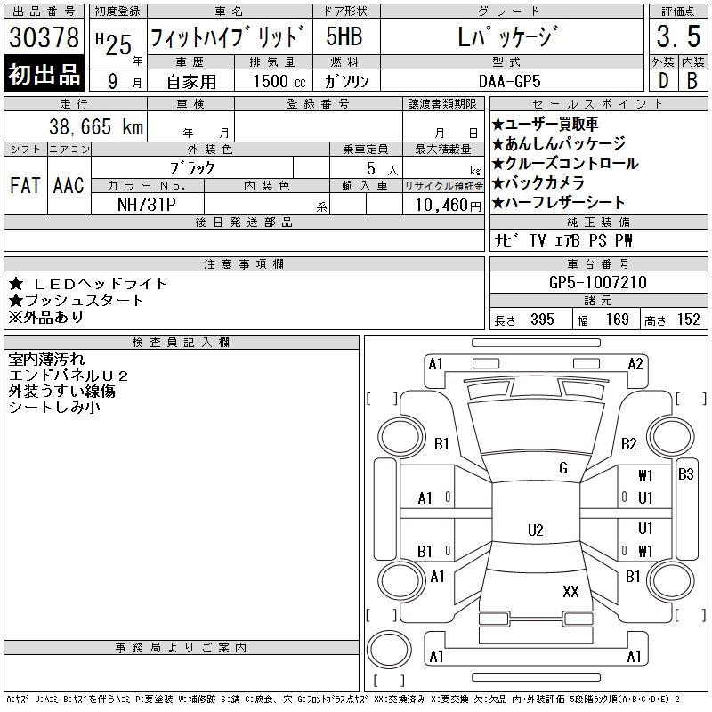HONDA FIT HYBRID L PACKAGE - лот 30378