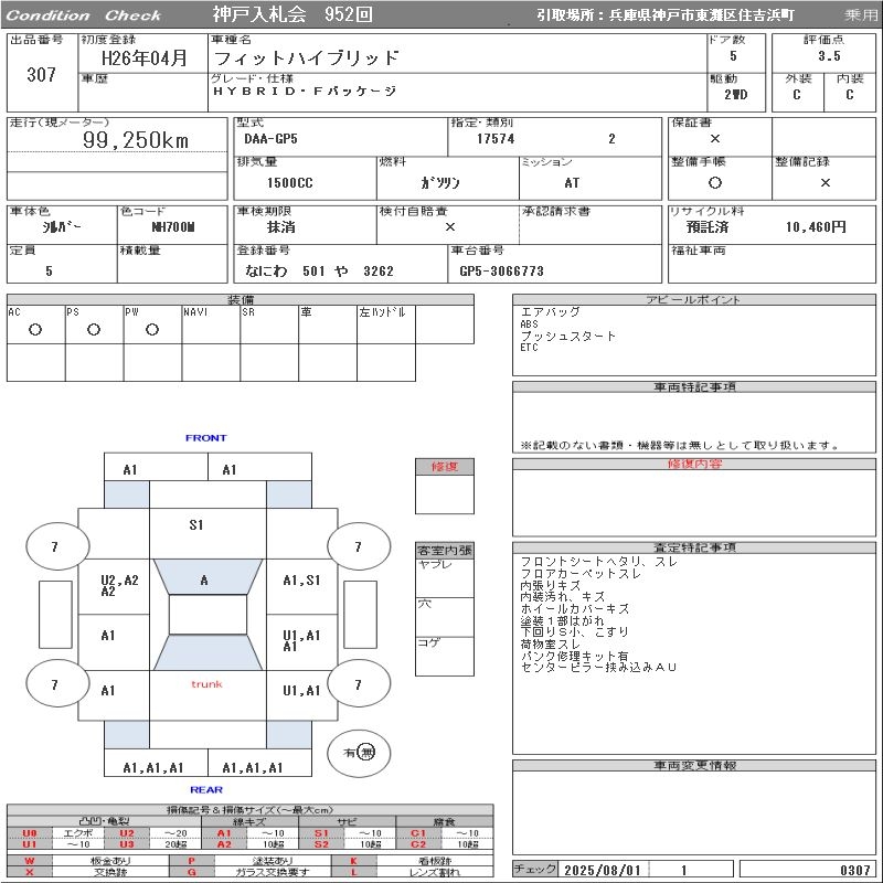 HONDA FIT HYBRID HYBRID*F PACKAGE - лот 307