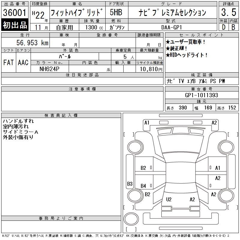 HONDA FIT HYBRID NAVIGATION PREMIUM SELECTION - лот 36001