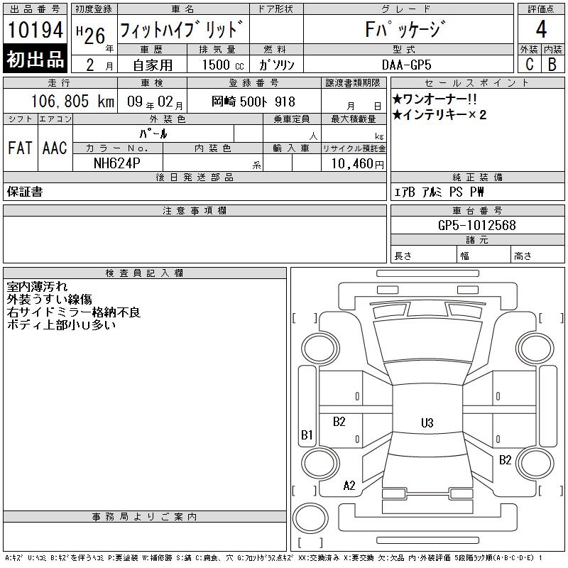 HONDA FIT HYBRID F PACKAGE - лот 10194