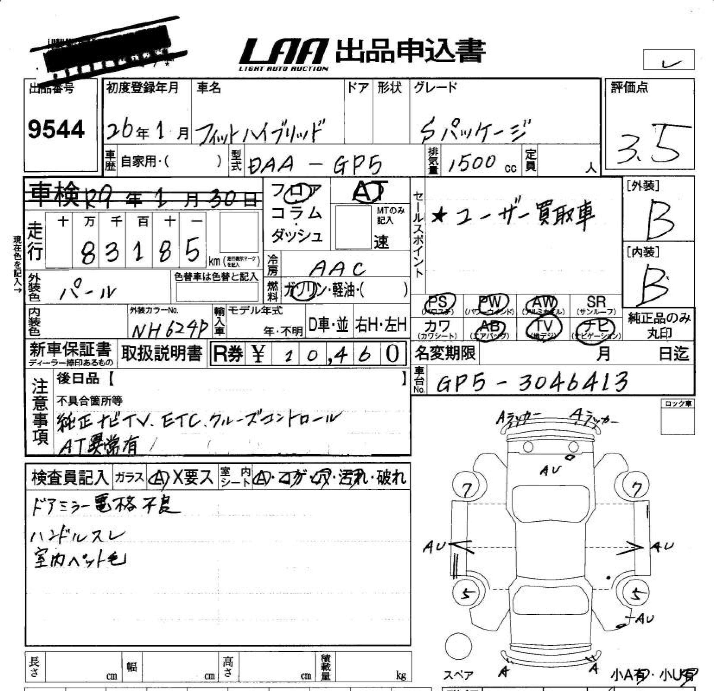 HONDA FIT HYBRID HYBRID *S PACKAGE - лот 9544