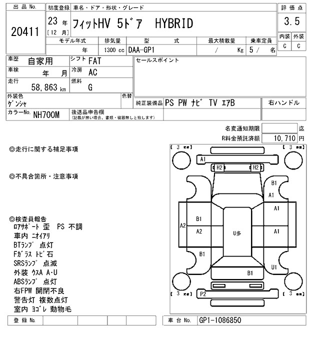 HONDA FIT HYBRID HYBRID - лот 20411