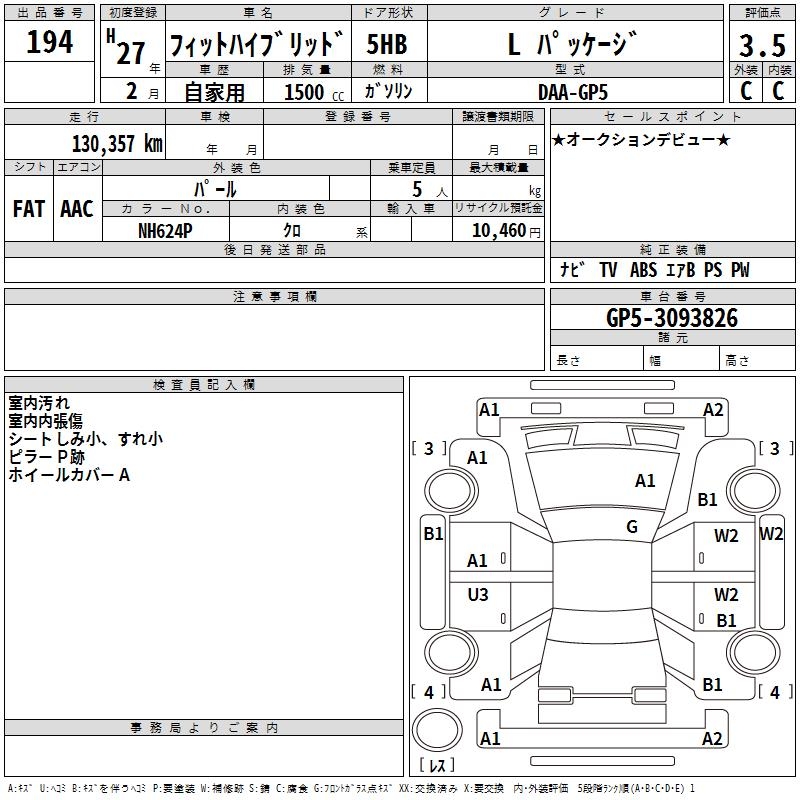 HONDA FIT HYBRID L PACKAGE - лот 194