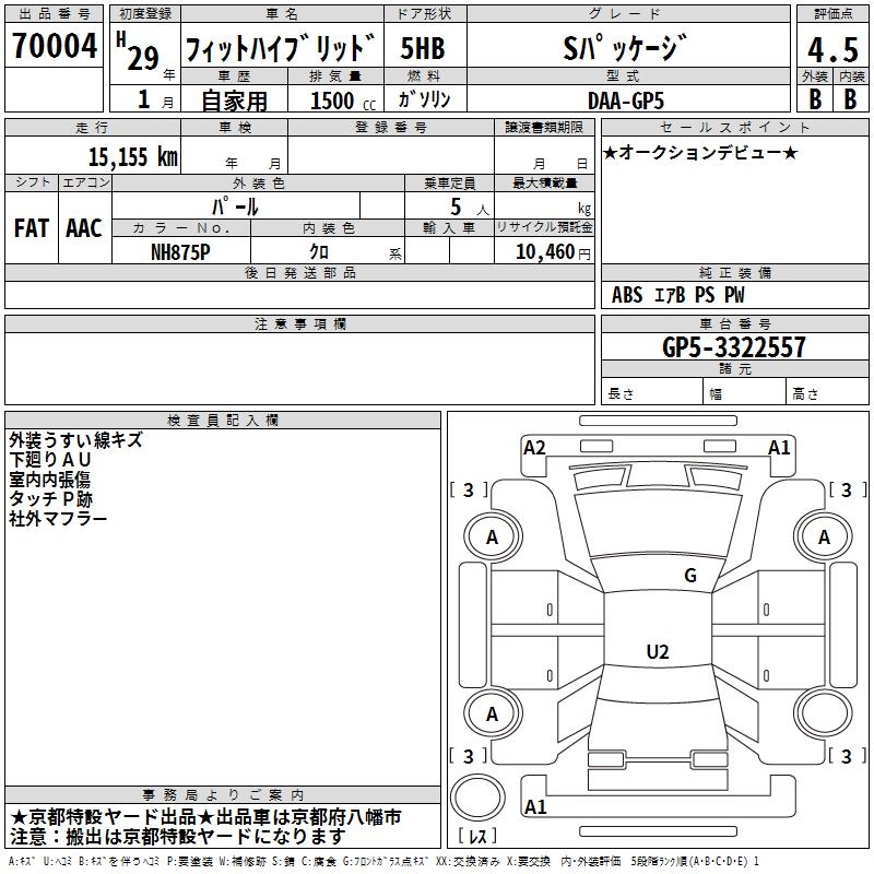 HONDA FIT HYBRID S PACKAGE - лот 70004