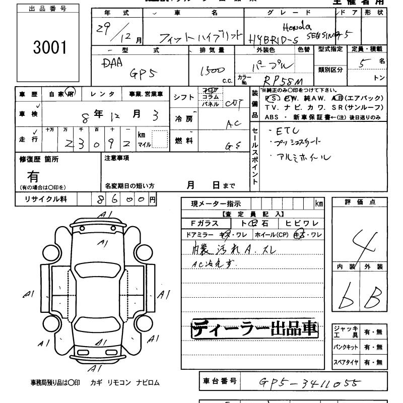 HONDA FIT HYBRID S HONDA SENSING - лот 3001