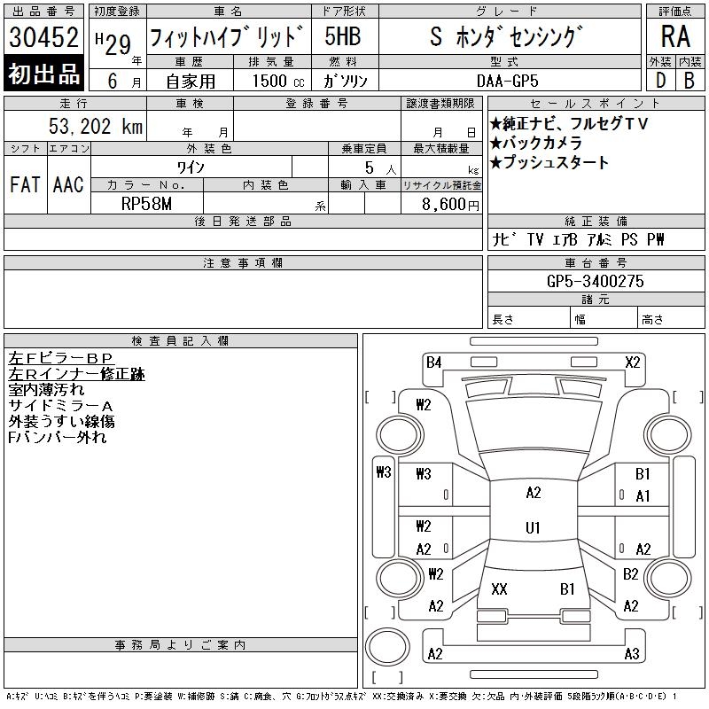 HONDA FIT HYBRID S HONDA SENSING - лот 30452