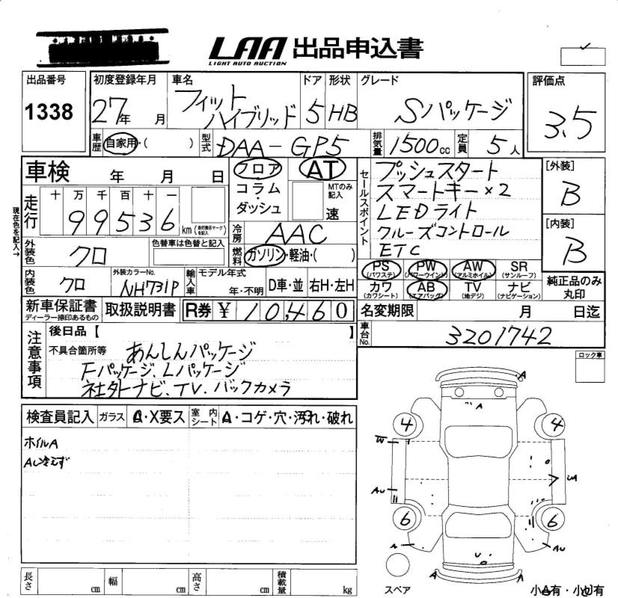 HONDA FIT HYBRID HYBRID *S PACKAGE - лот 1338