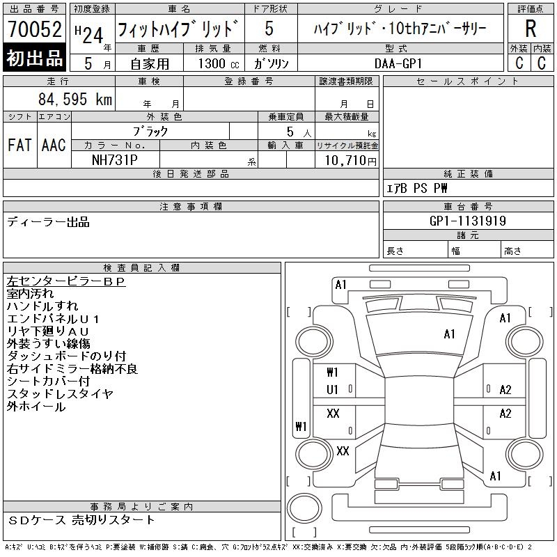 HONDA FIT HYBRID HYBRID 10TH ANNIVERSARY - лот 70052