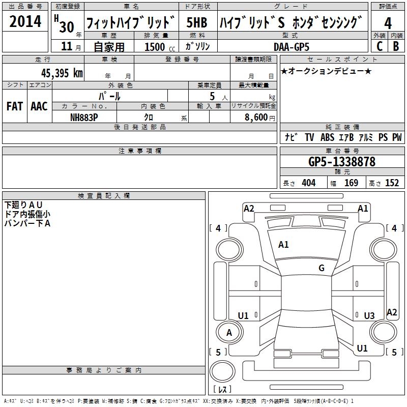 HONDA FIT HYBRID HYBRID S HONDA SENSING - лот 2014