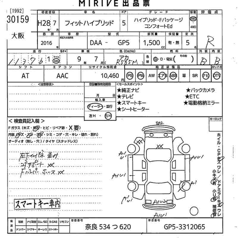 HONDA FIT HYBRID HYBRID *F PACKAGE COMFORT ED - лот 30159