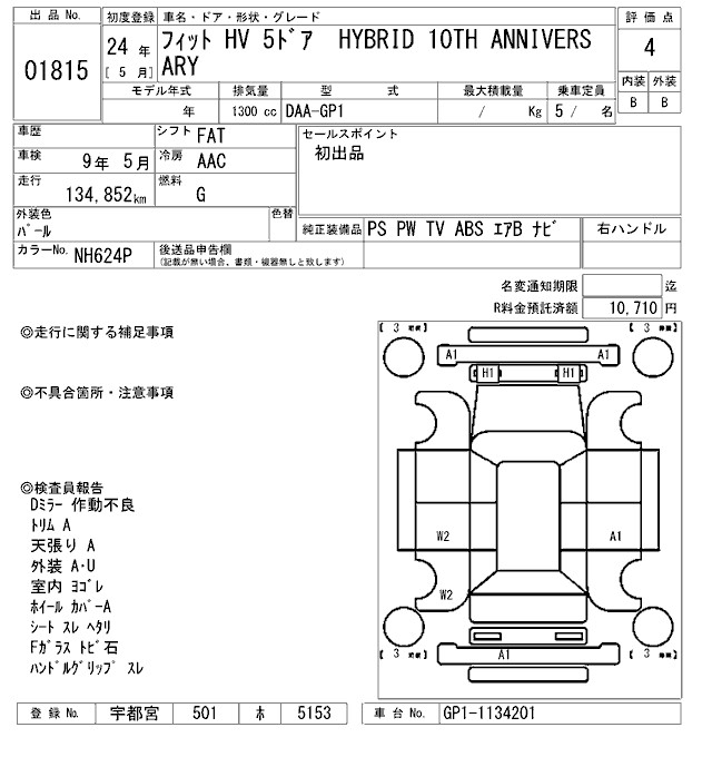 HONDA FIT HYBRID HYBRID 10TH ANNIVERSARY - лот 1815