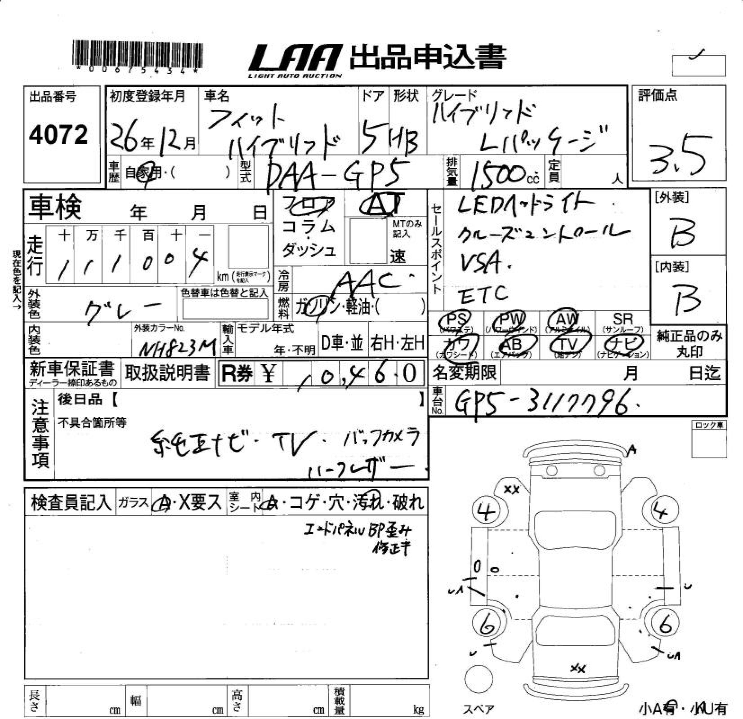 HONDA FIT HYBRID HYBRID *L PACKAGE - лот 4072