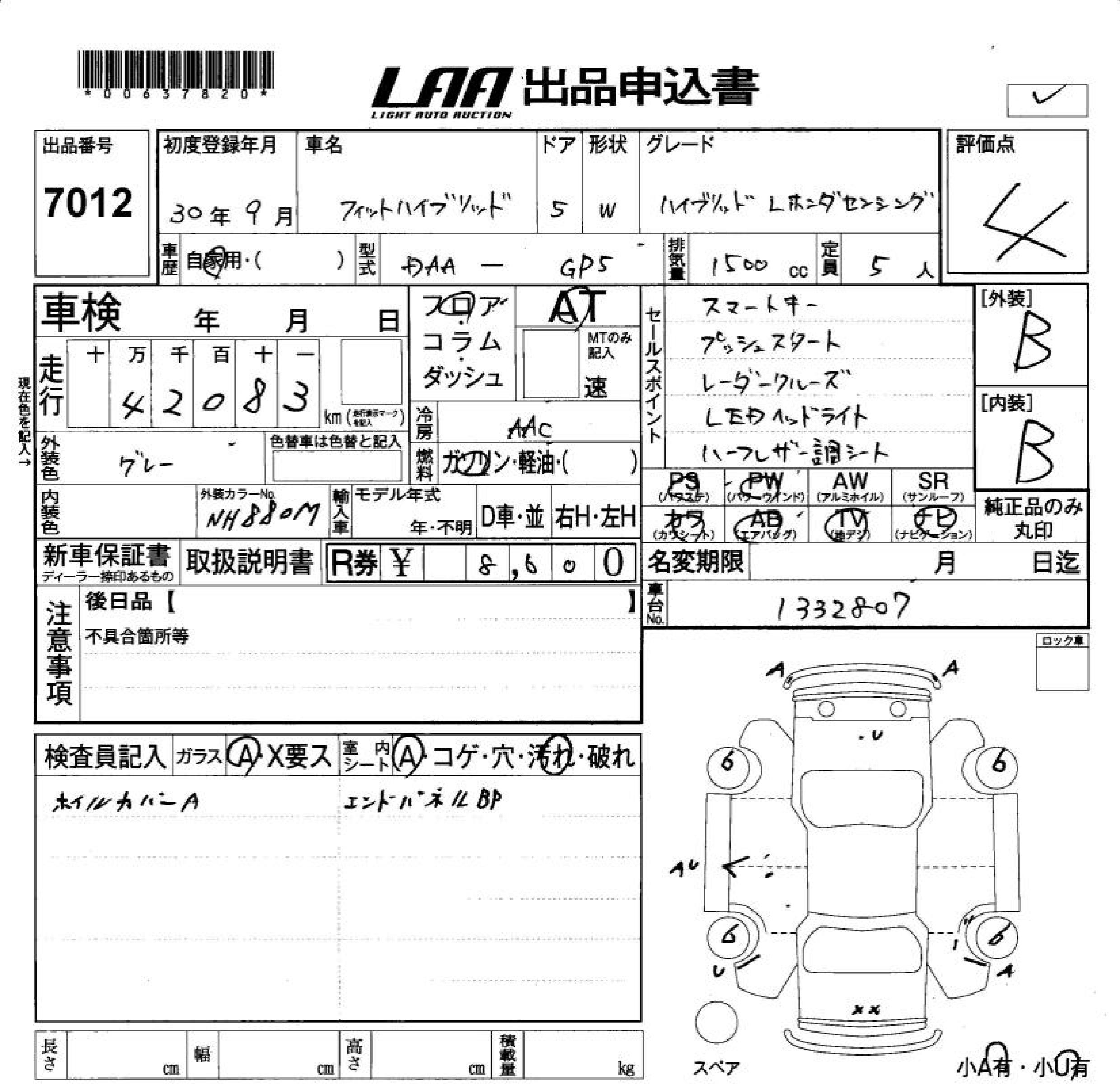 HONDA FIT HYBRID HYBRID *L HONDA SENSI - лот 7012