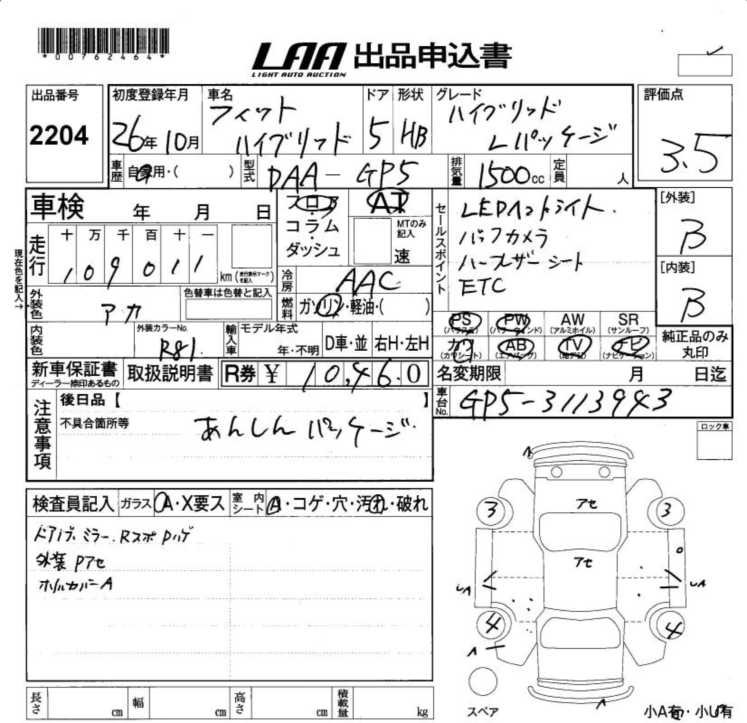 HONDA FIT HYBRID HYBRID *L PACKAGE - лот 2204