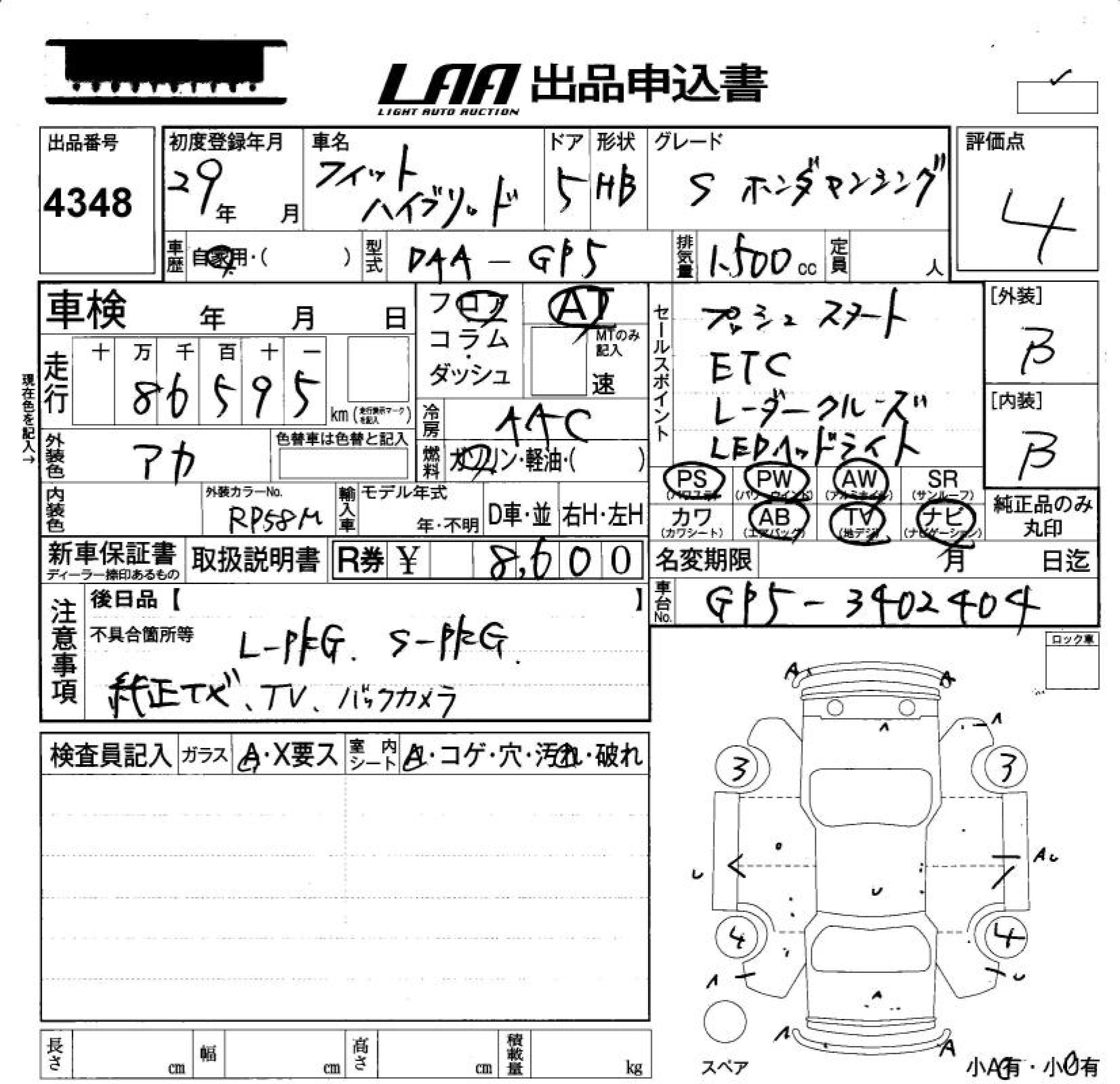 HONDA FIT HYBRID HYBRID *S HONDA SENSI - лот 4348
