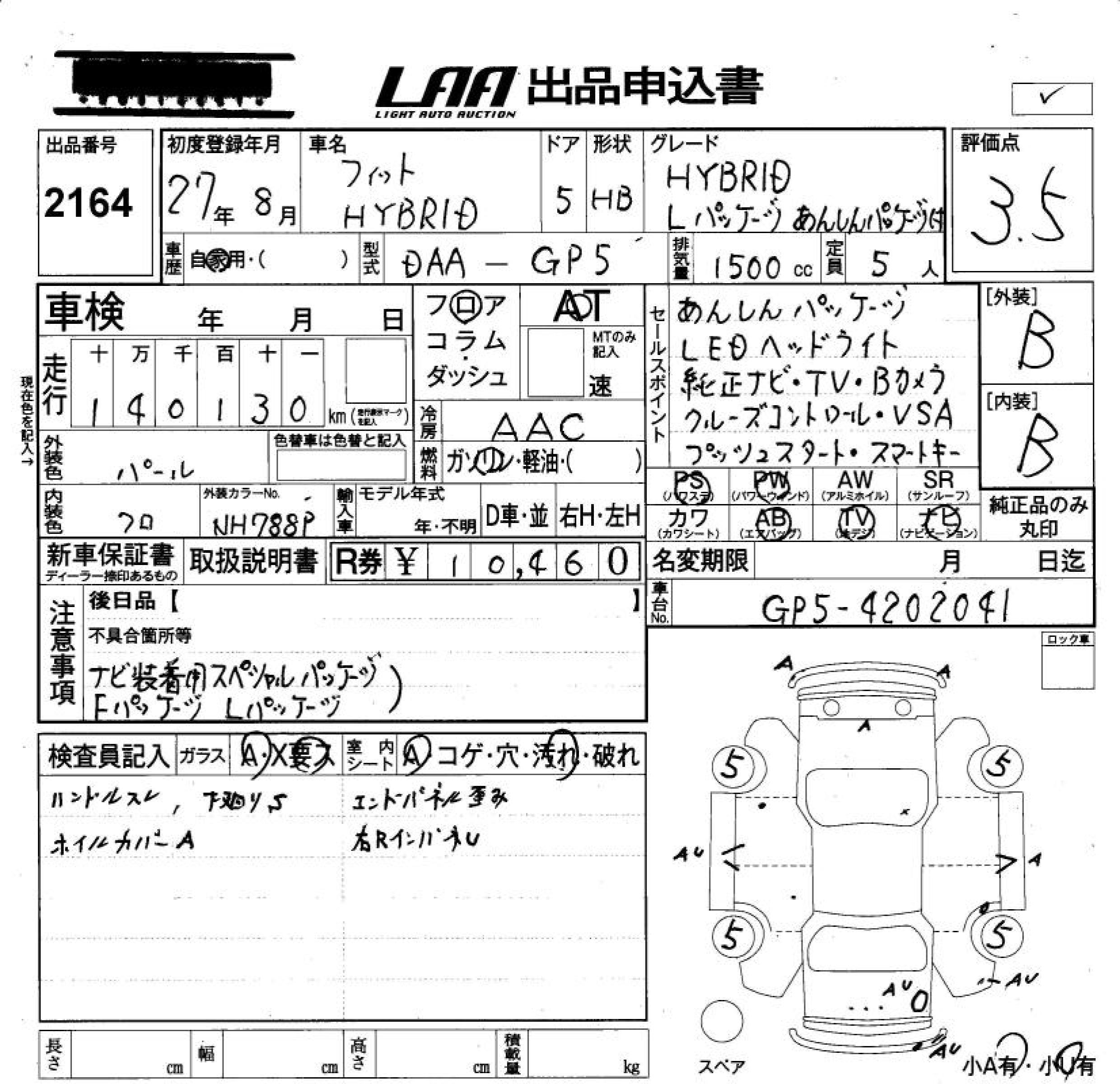 HONDA FIT HYBRID HYBRID *L PACKAGE . - лот 2164