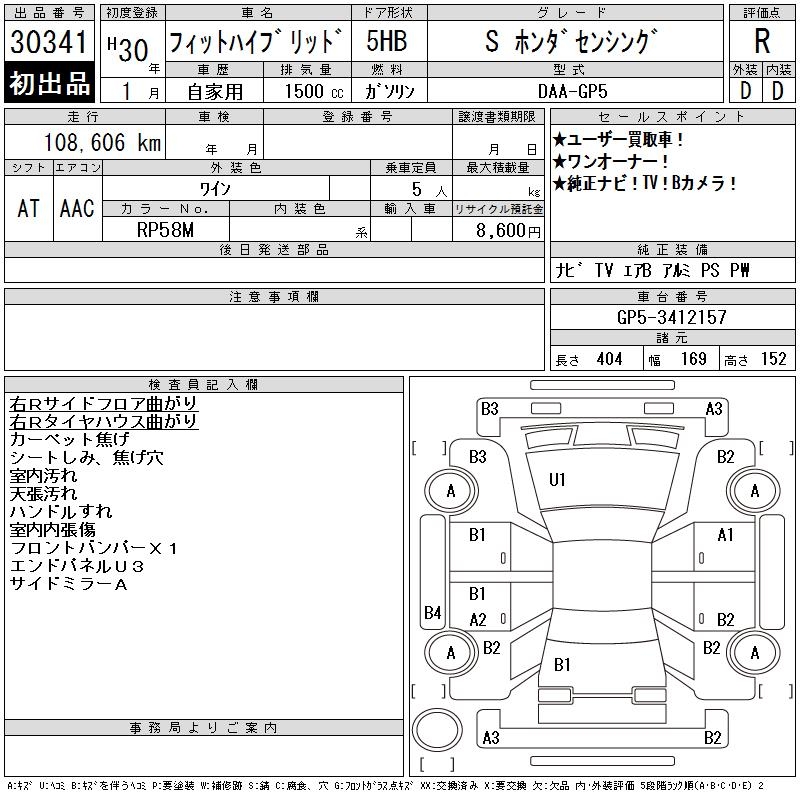 HONDA FIT HYBRID S HONDA SENSING - лот 30341