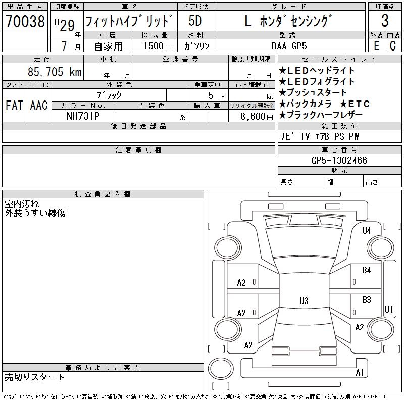 HONDA FIT HYBRID L HONDA SENSING - лот 70038