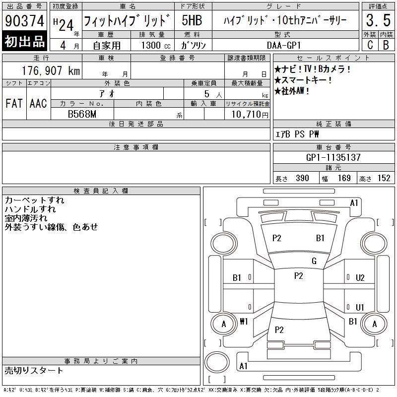 HONDA FIT HYBRID HYBRID 10TH ANNIVERSARY - лот 90374