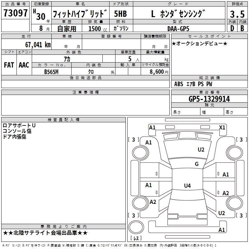 HONDA FIT HYBRID L HONDA SENSING - лот 73097