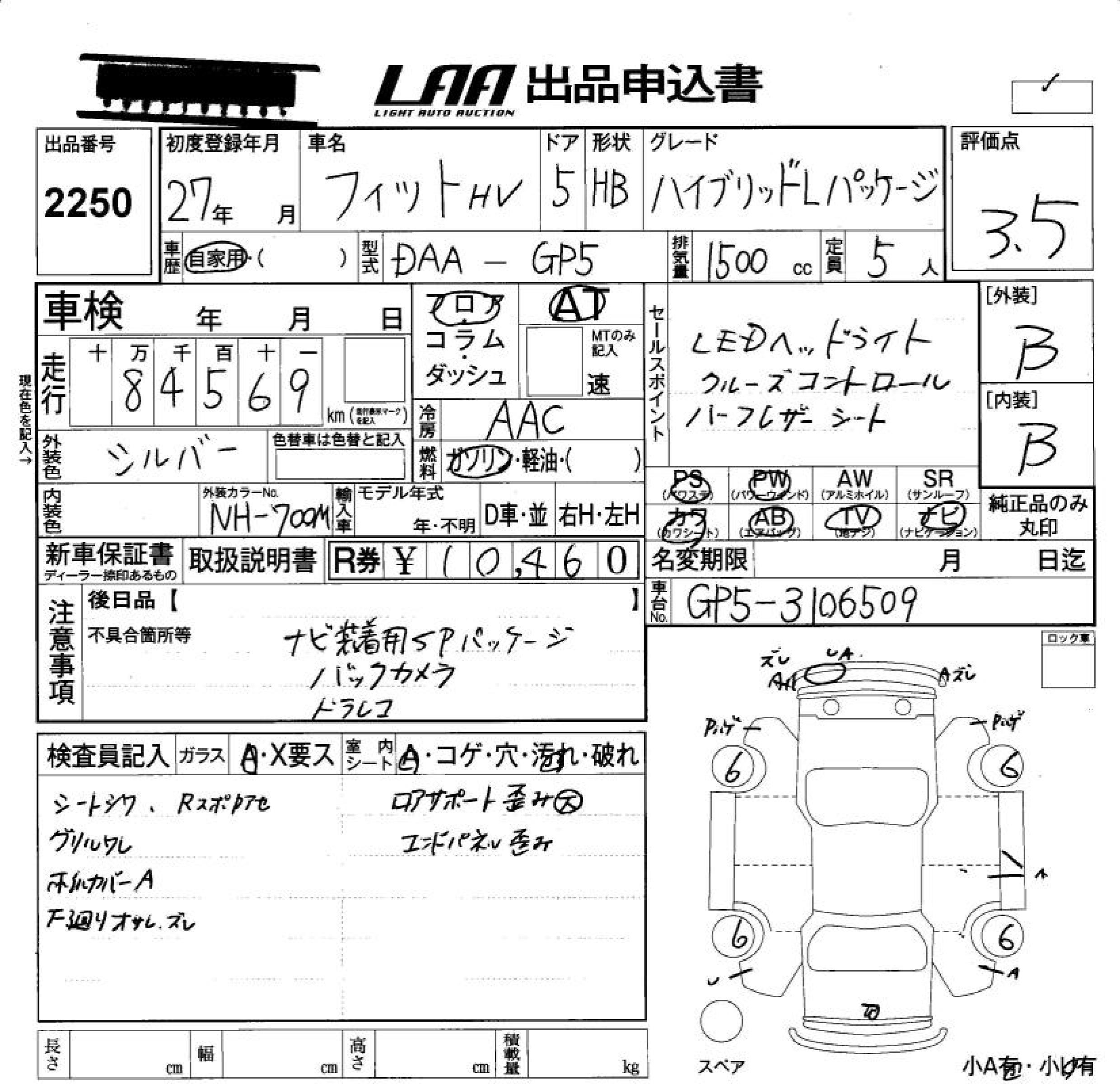 HONDA FIT HYBRID HYBRID *L PACKAGE - лот 2250