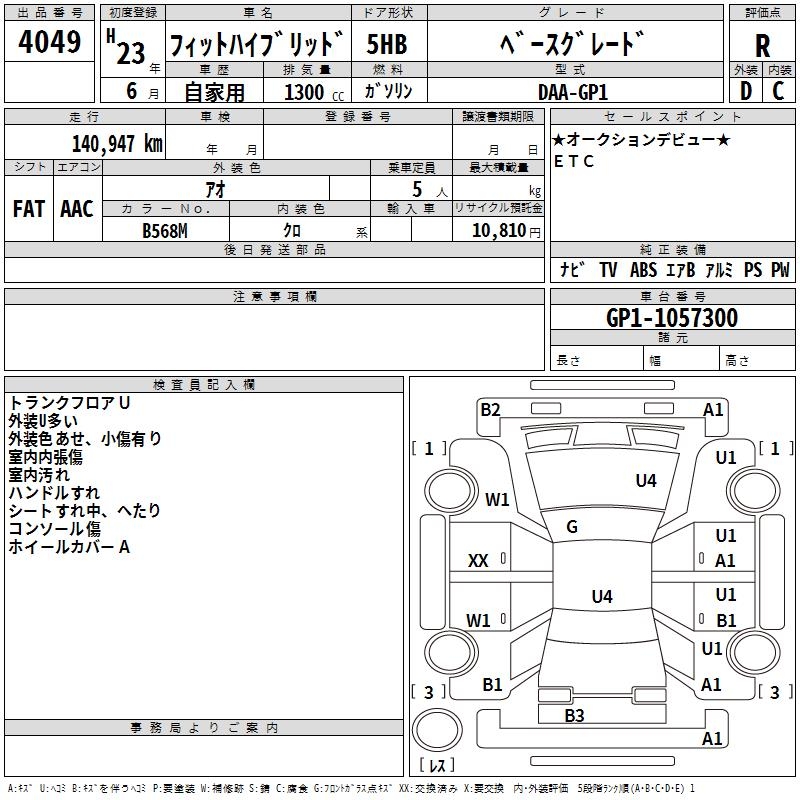 HONDA FIT HYBRID BASE GRADE - лот 4049