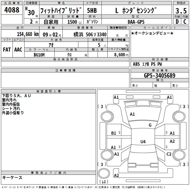 HONDA FIT HYBRID L HONDA SENSING - лот 4088