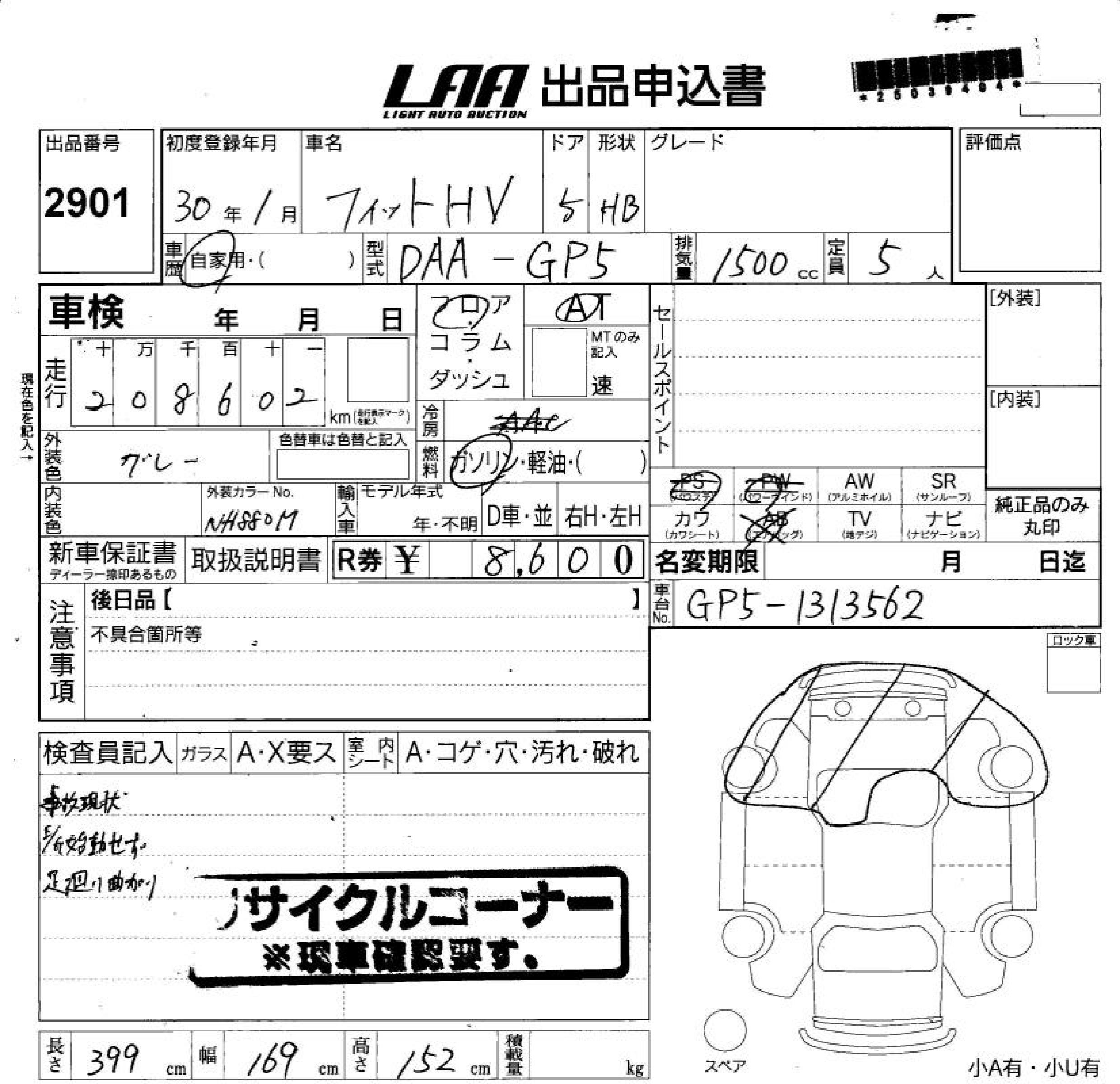 HONDA FIT HYBRID - лот 2901