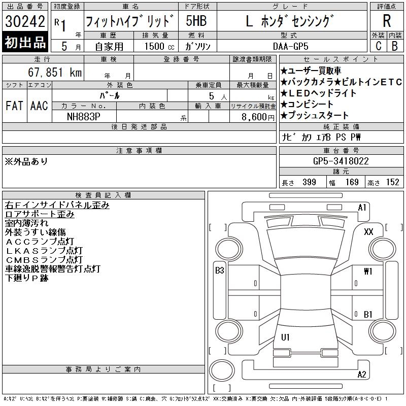 HONDA FIT HYBRID L HONDA SENSING - лот 30242