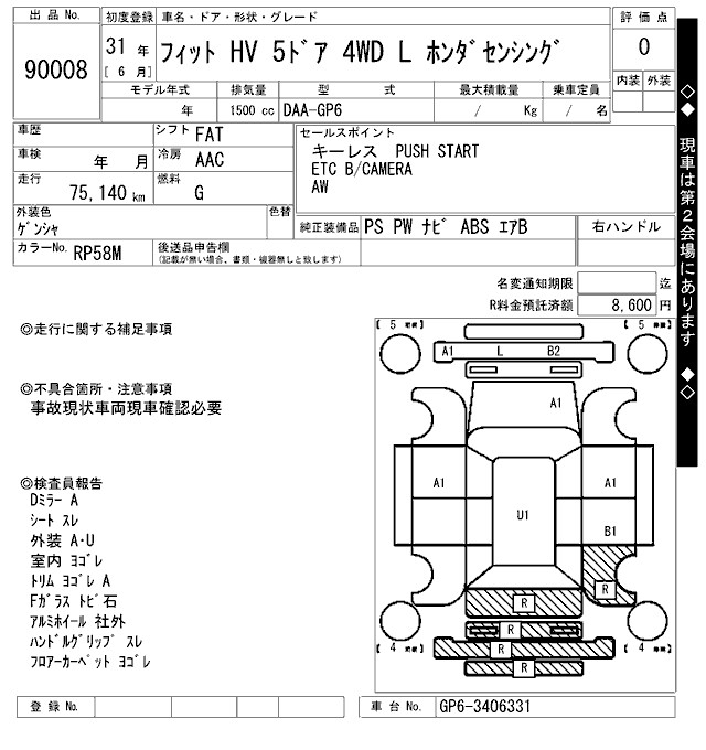 HONDA FIT HYBRID L HONDA SENSING - лот 90008