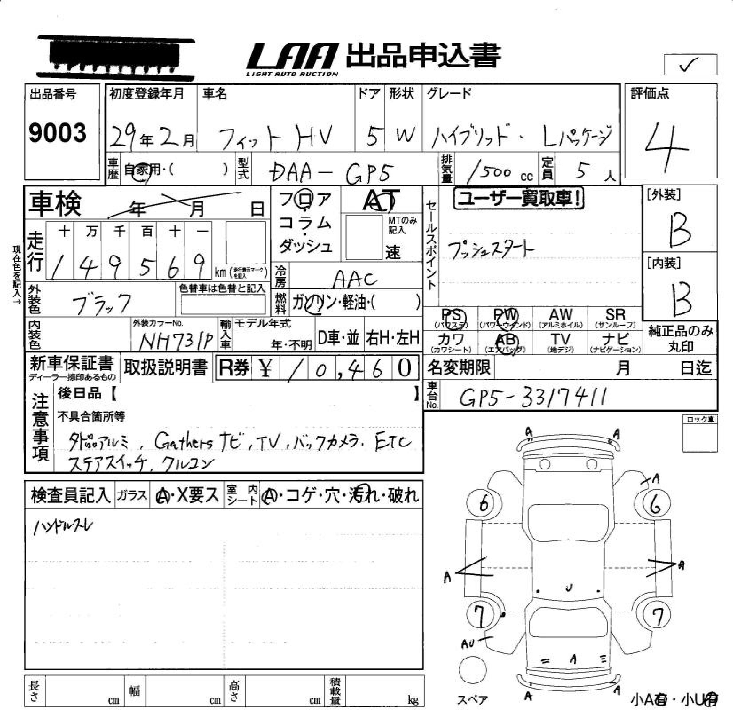HONDA FIT HYBRID HYBRID *L PACKAGE - лот 9003