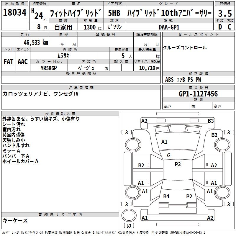 HONDA FIT HYBRID HYBRID 10TH ANNIVERSARY - лот 18034