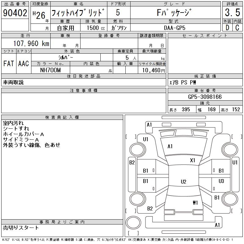 HONDA FIT HYBRID F PACKAGE - лот 90402