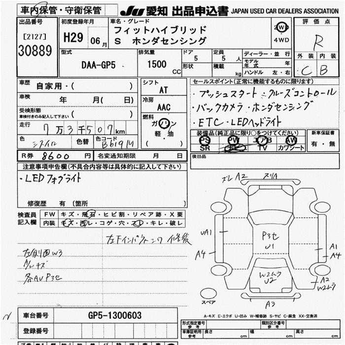 HONDA FIT HYBRID S HONDA SENSING - лот 30889