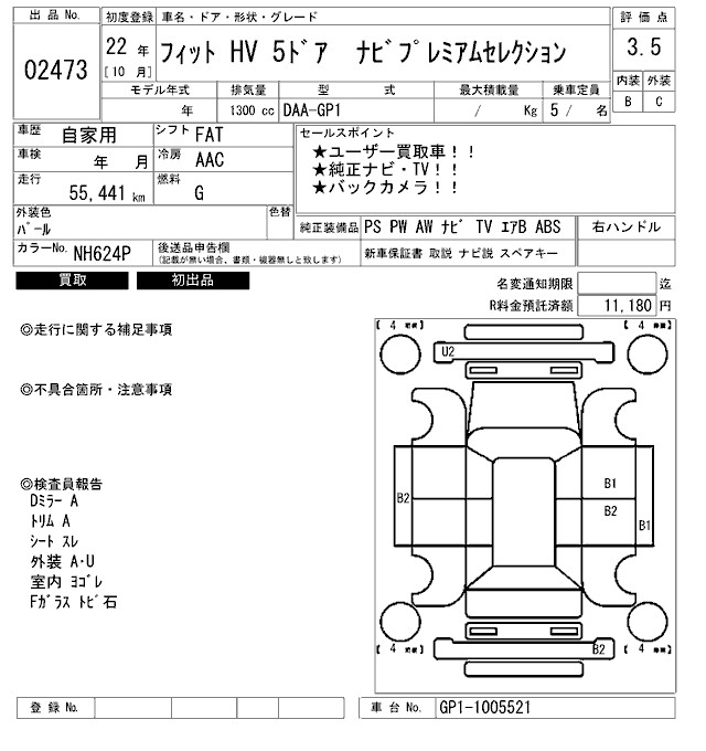 HONDA FIT HYBRID NAVIGATION PREMIUM SELECTION - лот 2473