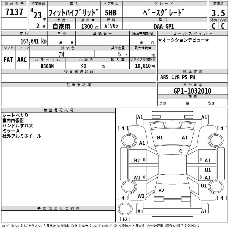 HONDA FIT HYBRID BASE GRADE - лот 7137