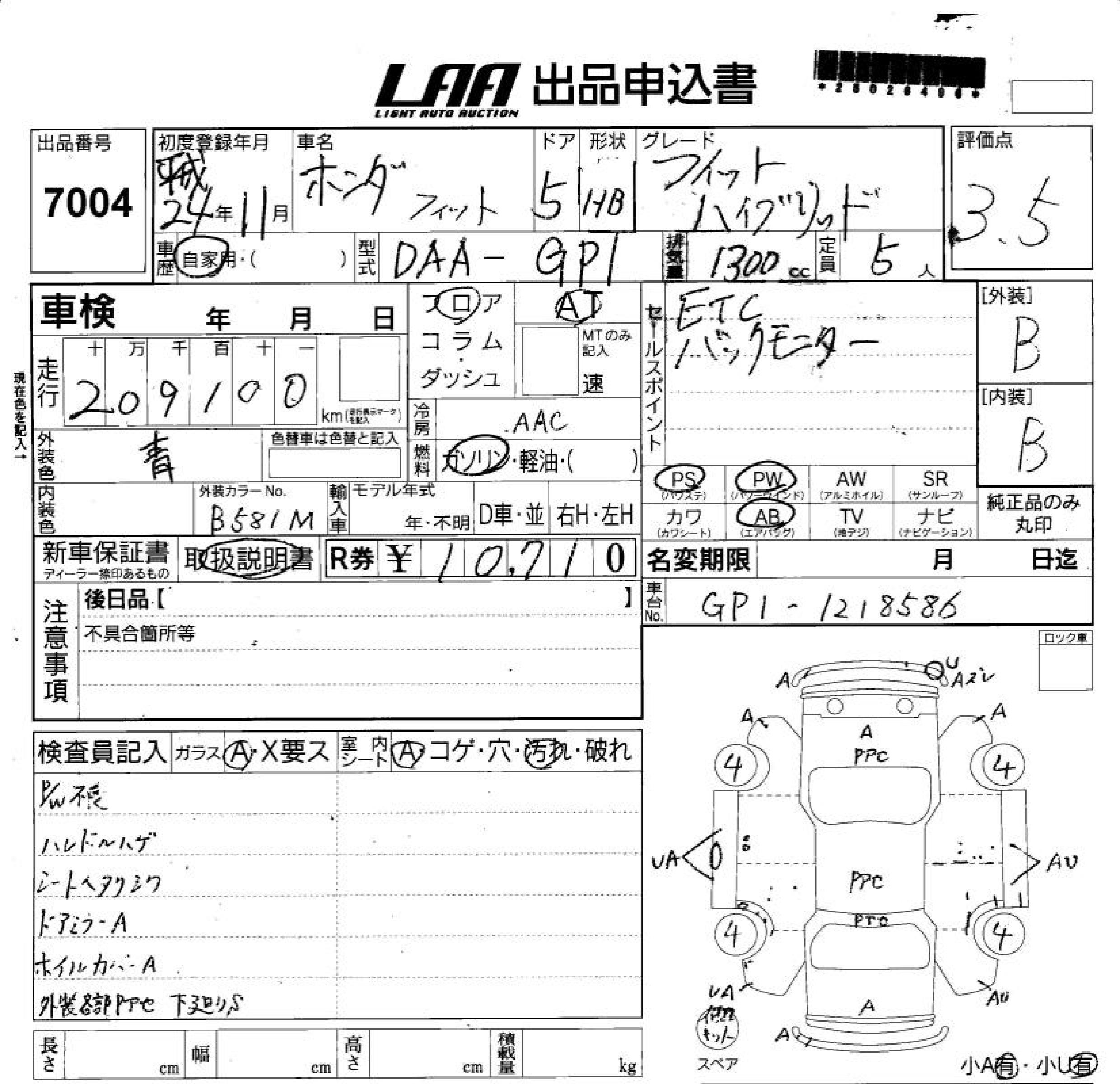 HONDA FIT HYBRID HYBRID - лот 7004