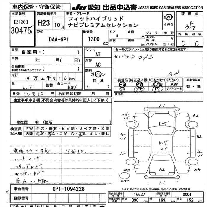 HONDA FIT HYBRID NAVIGATION PREMIUM SELECTION - лот 30475