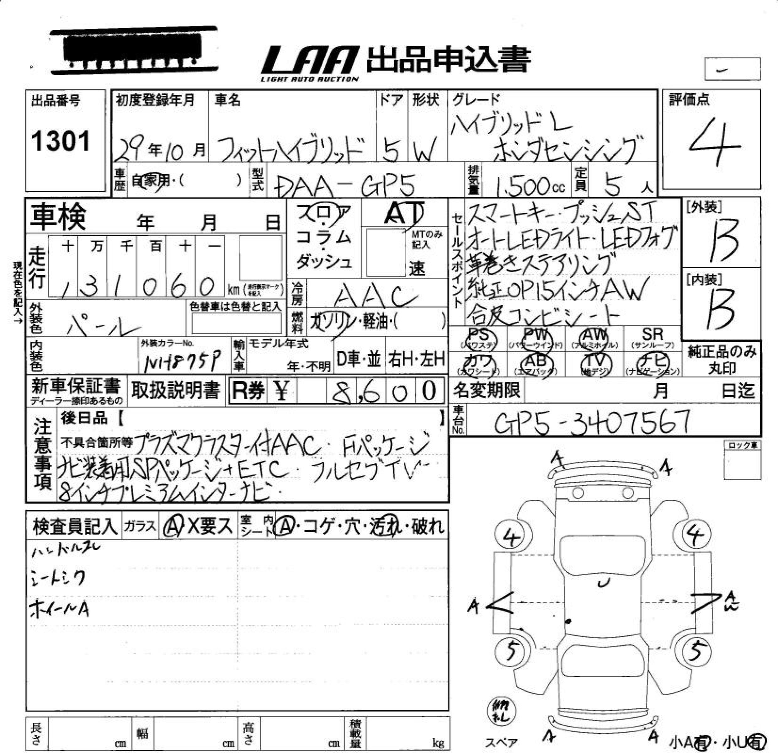 HONDA FIT HYBRID HYBRID *L HONDA SENSI - лот 1301