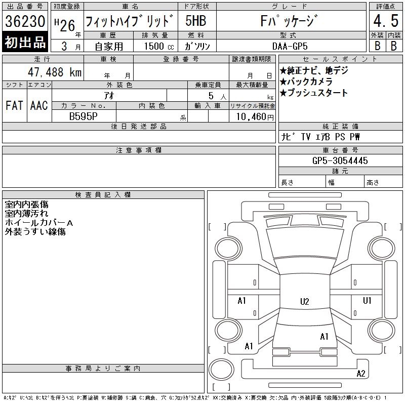 HONDA FIT HYBRID F PACKAGE - лот 36230