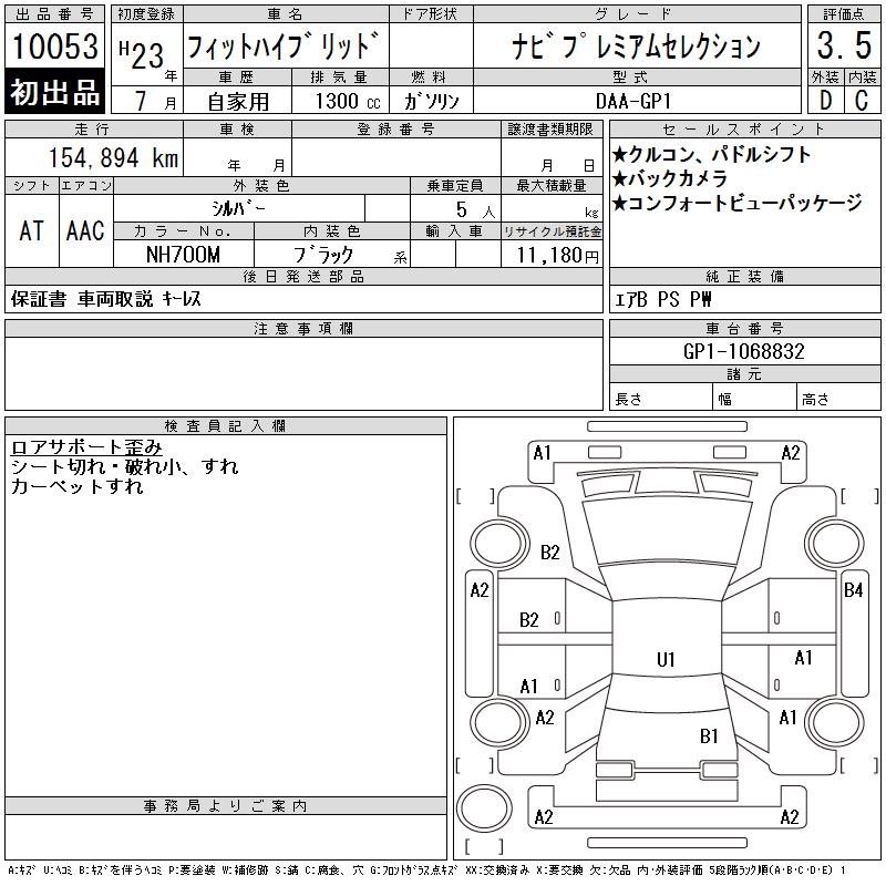 HONDA FIT HYBRID NAVIGATION PREMIUM SELECTION - лот 10053