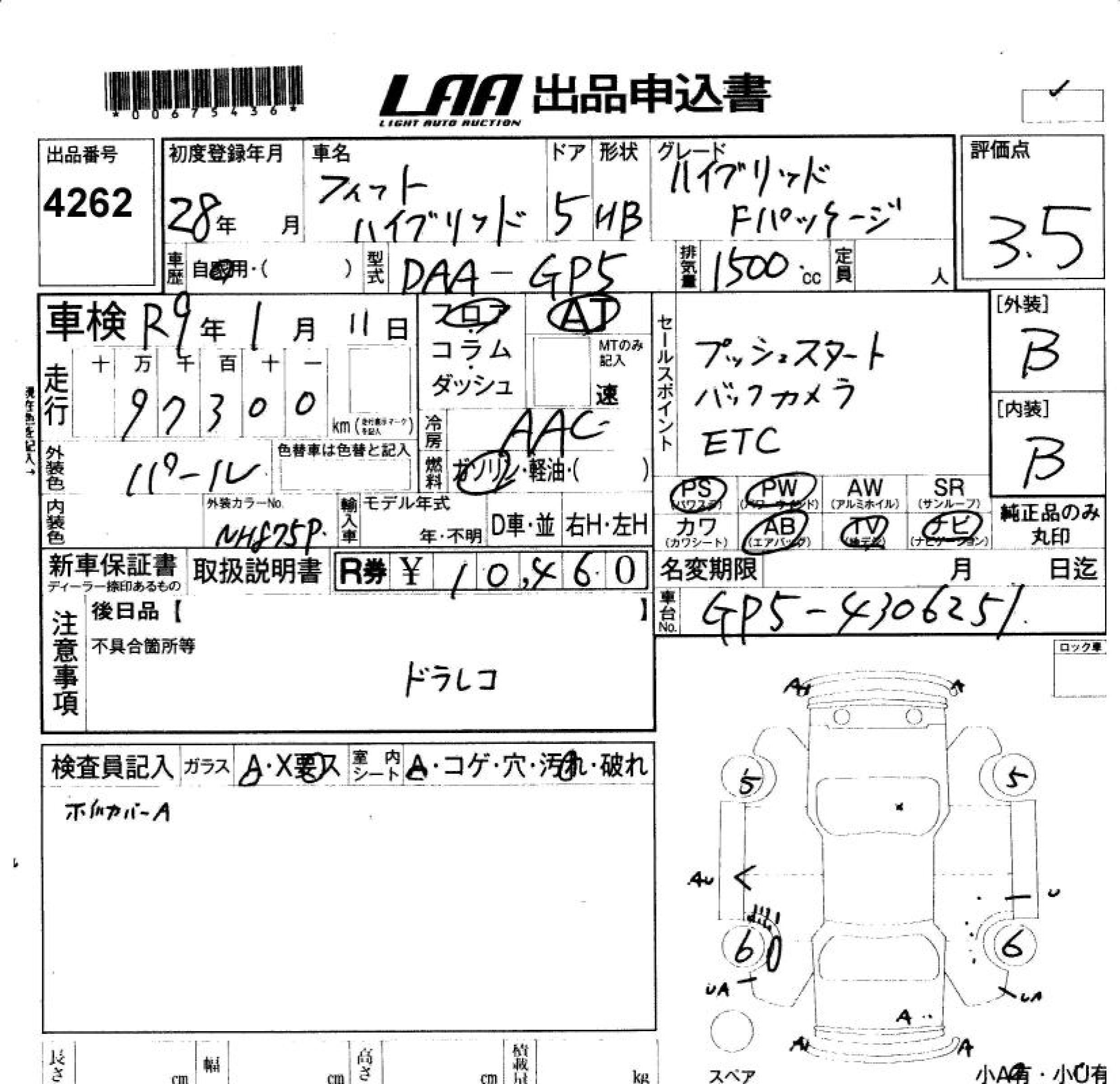 HONDA FIT HYBRID HYBRID *F PACKAGE - лот 4262