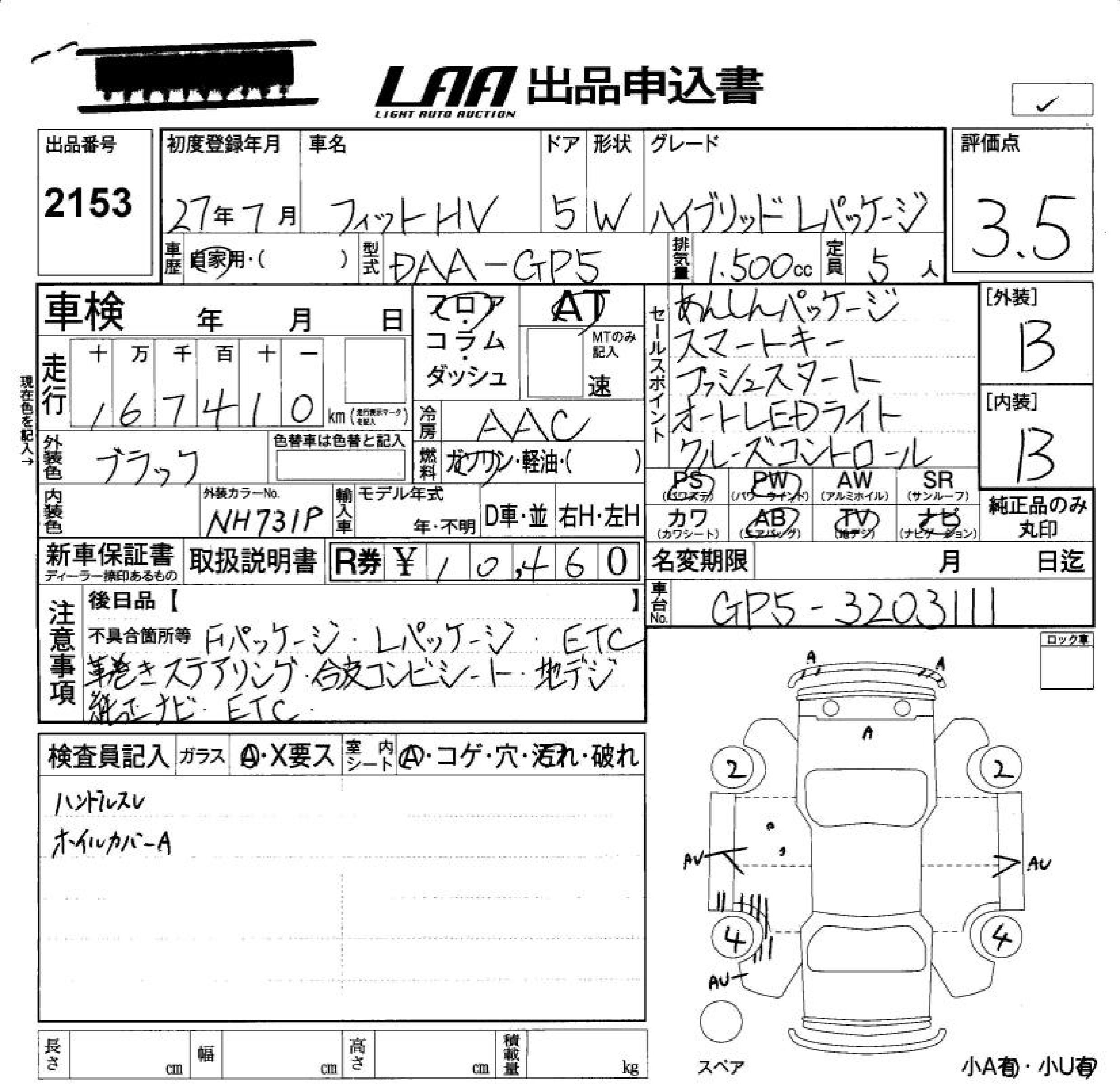 HONDA FIT HYBRID HYBRID *L PACKAGE - лот 2153